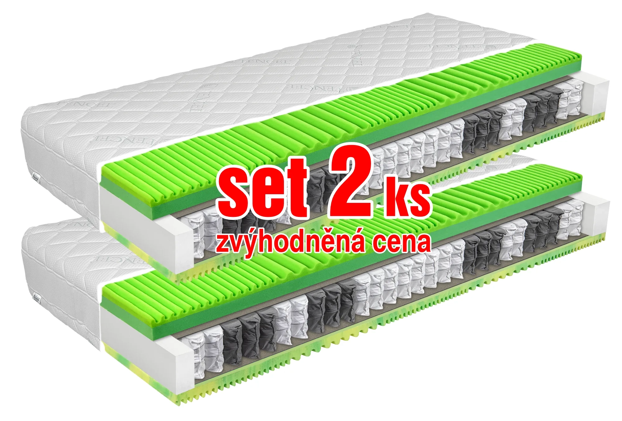 Rozměry lze libovolně kombinovat. Nabídka zahrnuje 2 kusy matrací.