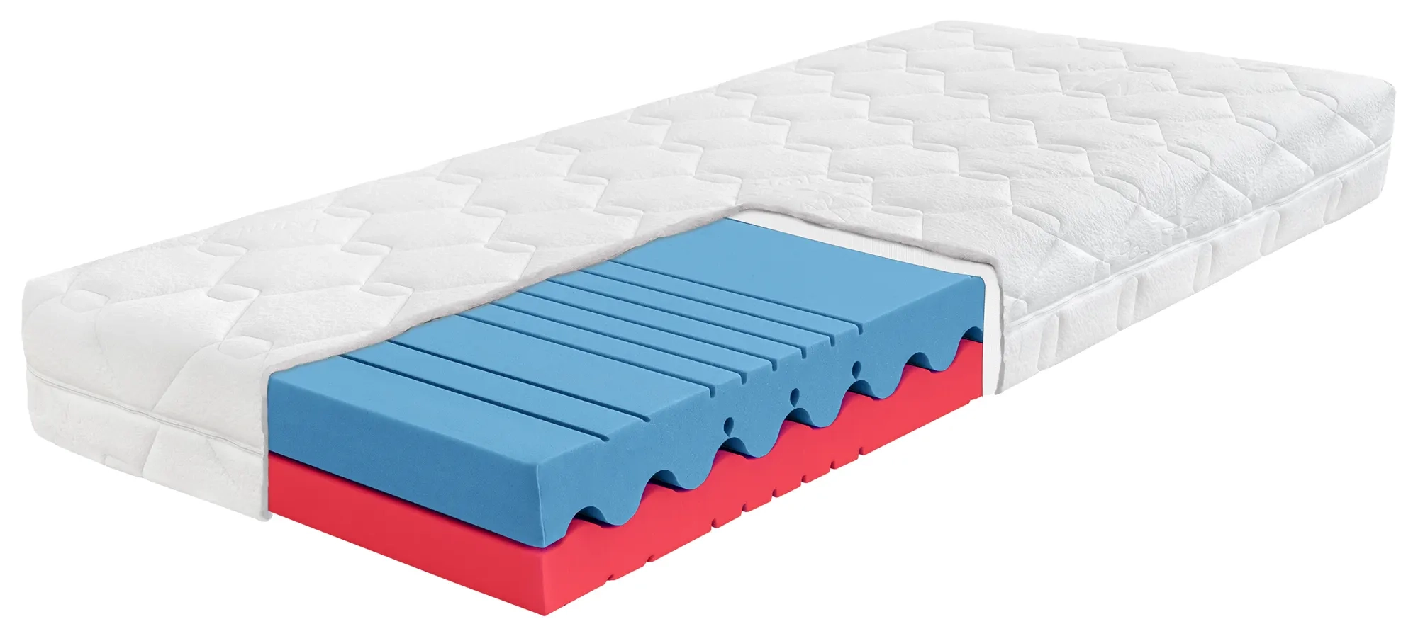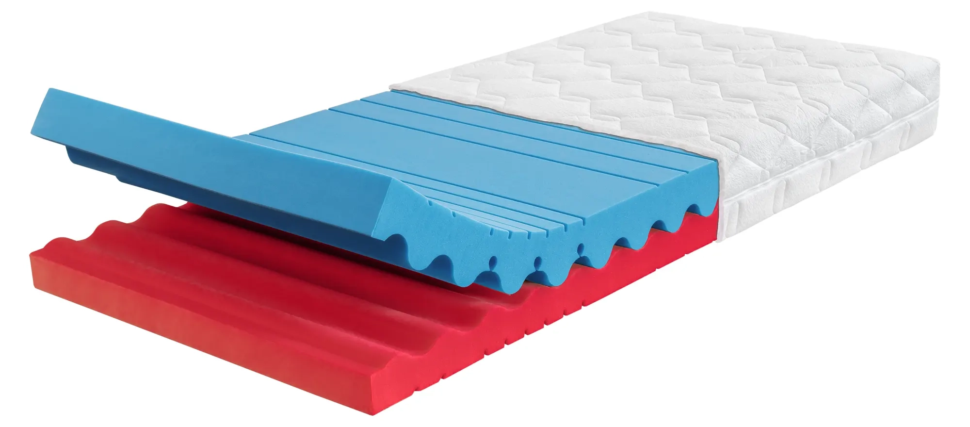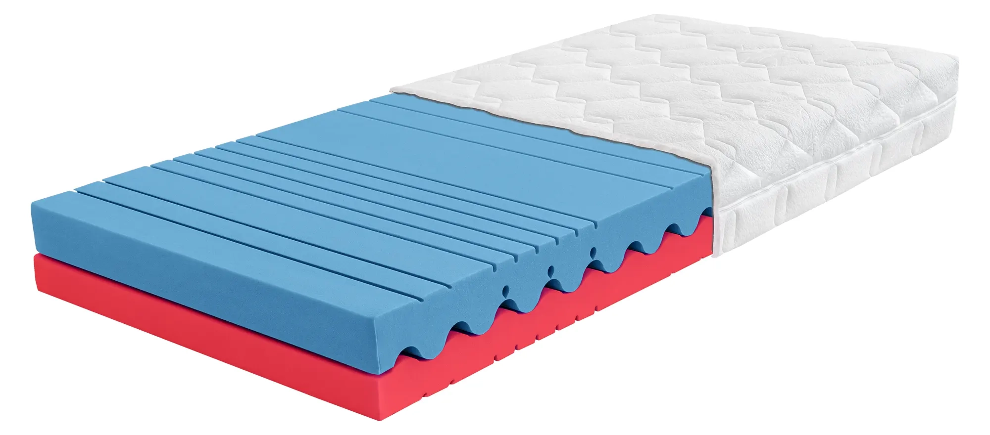 Pevná hybridní pěna (HY 40 kg/m³): Tvoří stabilní a prodyšnou základnu matrace.