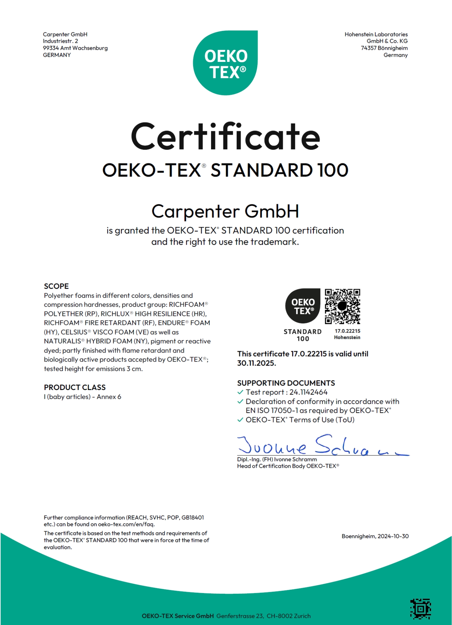 Vysoce pružná studená pěna (HR 50 kg/m³): Zajišťuje dokonalé kopírování křivek těla, mimořádnou odolnost a dlouhou životnost.
