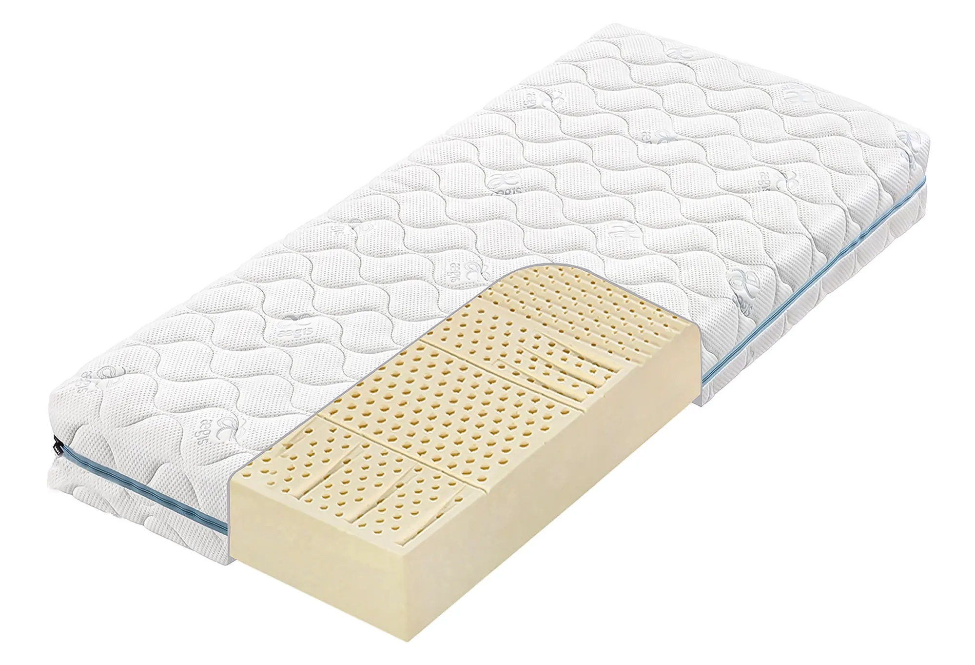 Srdcem matrace je jediný blok 100% latexu o vysoké hustotě (60 kg/m³), který zaručuje pružnou, ale stabilní oporu.
