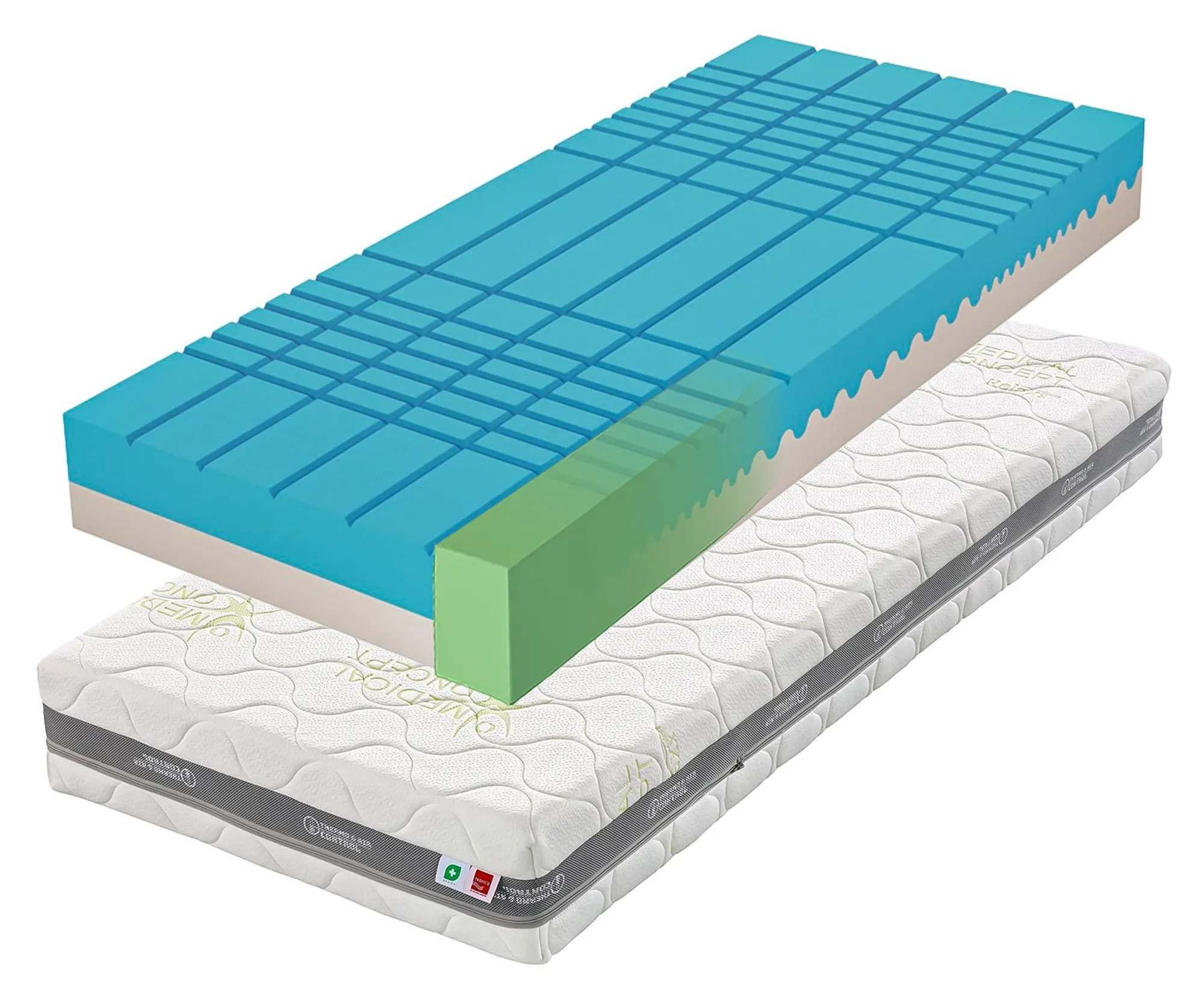 Oboustranná, ortopedická zónová matrace pro velké i malé, těžké i lehké. Nabízí mimořádnou pružnost a zároveň nešidí na přizpůsobivosti. To vše díky použití hybridní pěny. Matrace bez lepidel. Skvělá volba pro všechny milovníky pevnějších matrací a děti.
