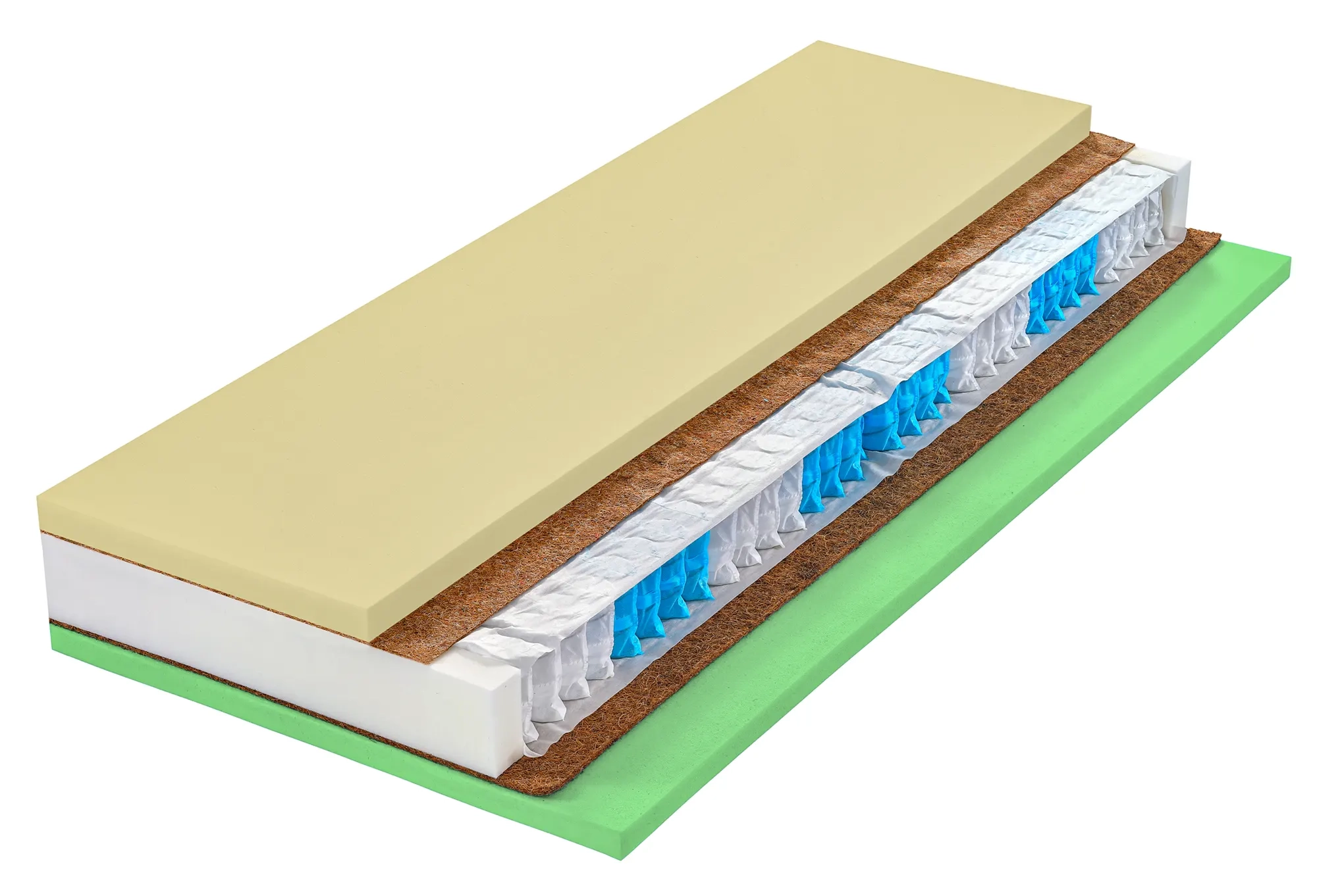Tropico, taštičkové pružiny, Flexifoam®, HY pěna a kokos, tuhost 4/4,5 (rozsah 1-5), nosnost 150 kg, výška 24 cm