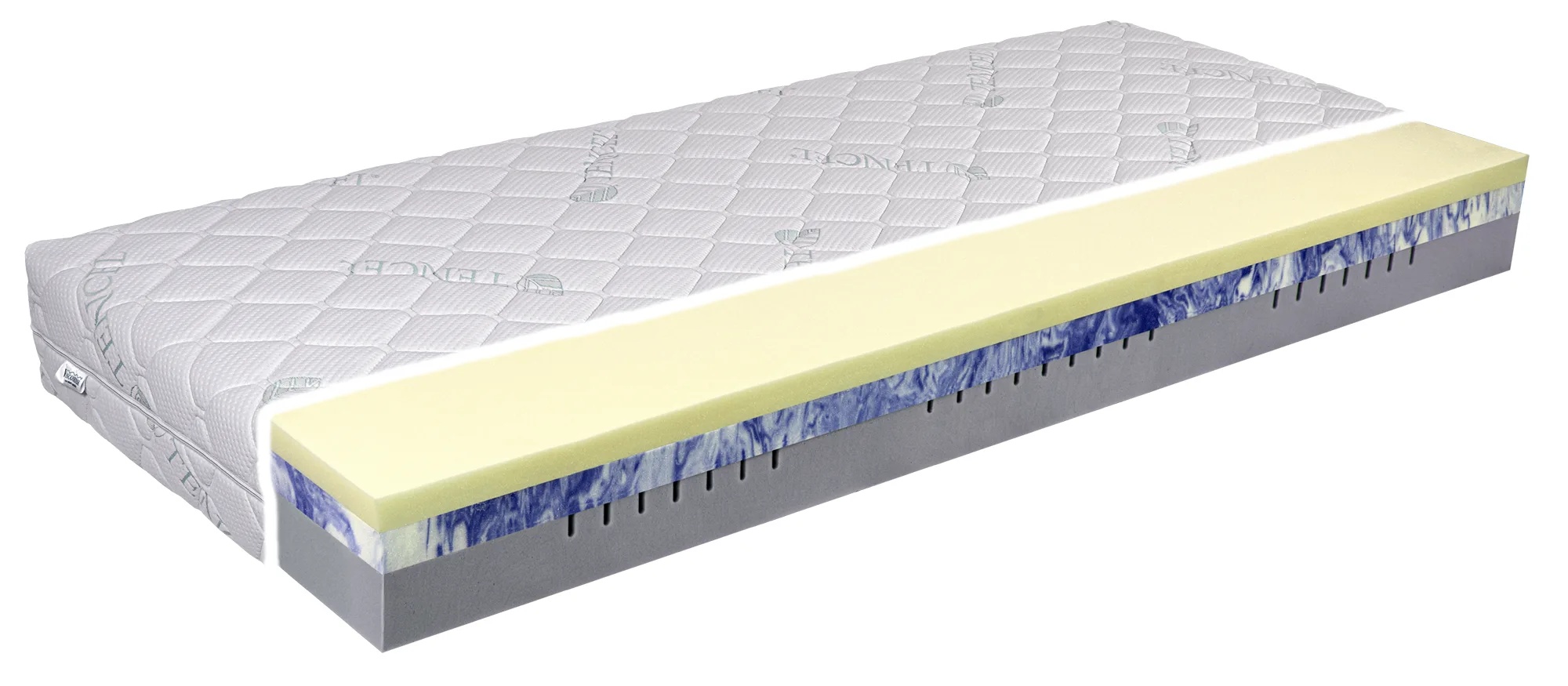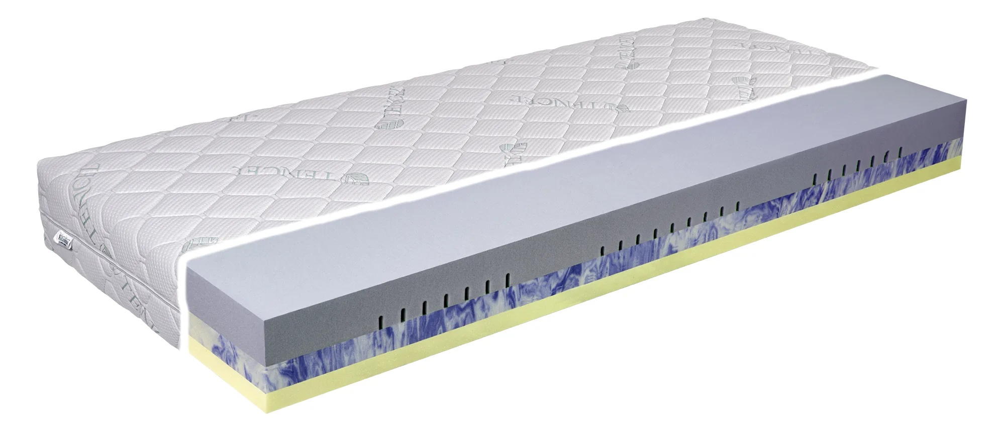 Nechte se pohltit vrstvou vysoceobjemové paměťové pěny. Ta se inteligentně přizpůsobí křivkám Vašeho těla, rovnoměrně rozloží váhu a poskytne okamžitý pocit úlevy. Pod ní se nachází inovativní BIO pěna, která dodává matraci pružnost a stabilitu.